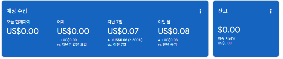 초기 승인 후 바로 광고 수익이 올라가는 것은 아닙니다. 하루 방문자 100명 이하일 경우, CPC 단가가 높아도 수익은 미미합니다.