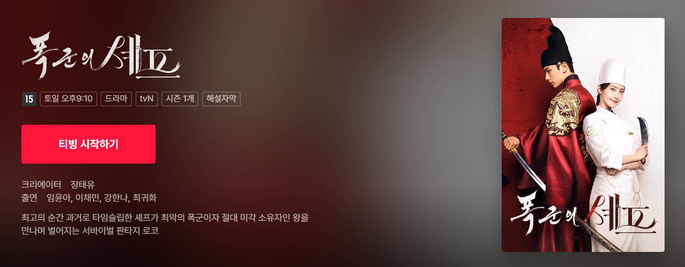 최고의 순간 과거로 타임슬립한 셰프가 최악의 폭군이자 절대 미각 소유자인 왕을 만나며 벌어지는 서바이벌 판타지 로코