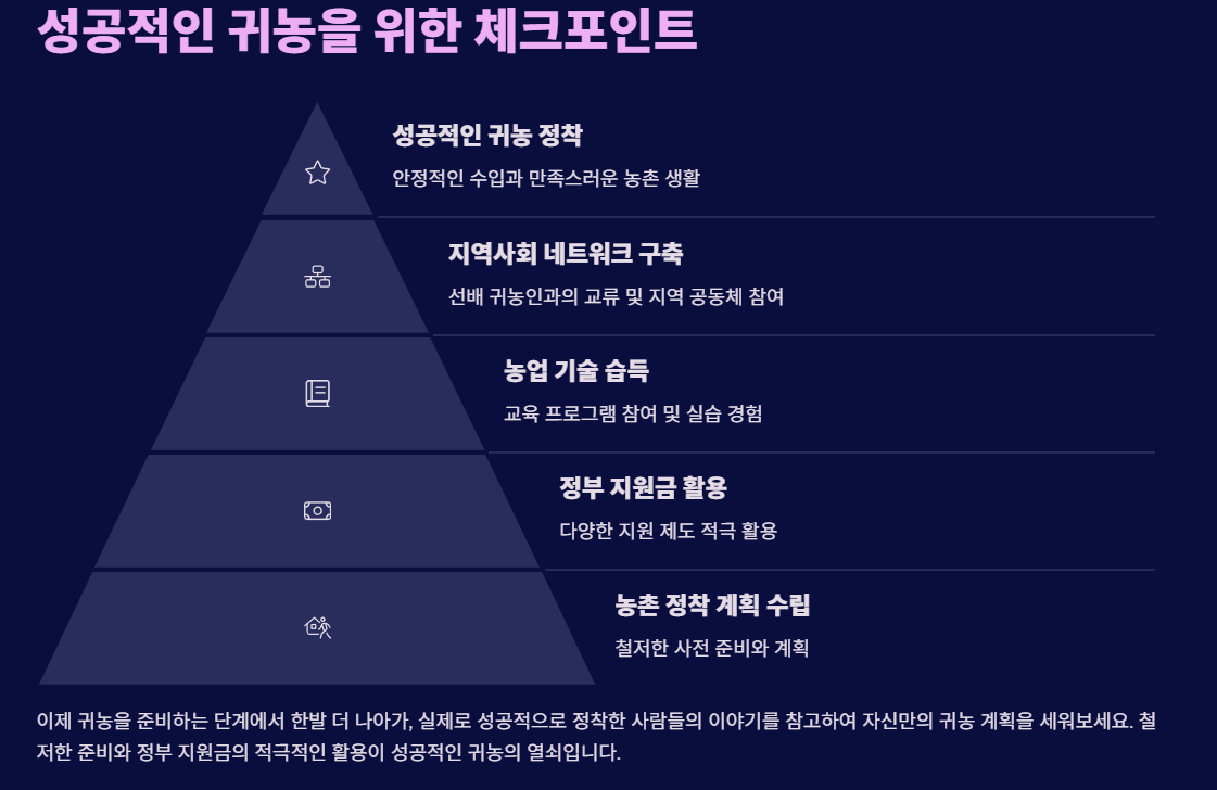 이제 귀농을 준비하는 단계에서 한발 더 나아가, 실제로 성공적으로 정착한 사람들의 이야기를 참고하여 자신만의 귀농 계획을 세워보세요.
