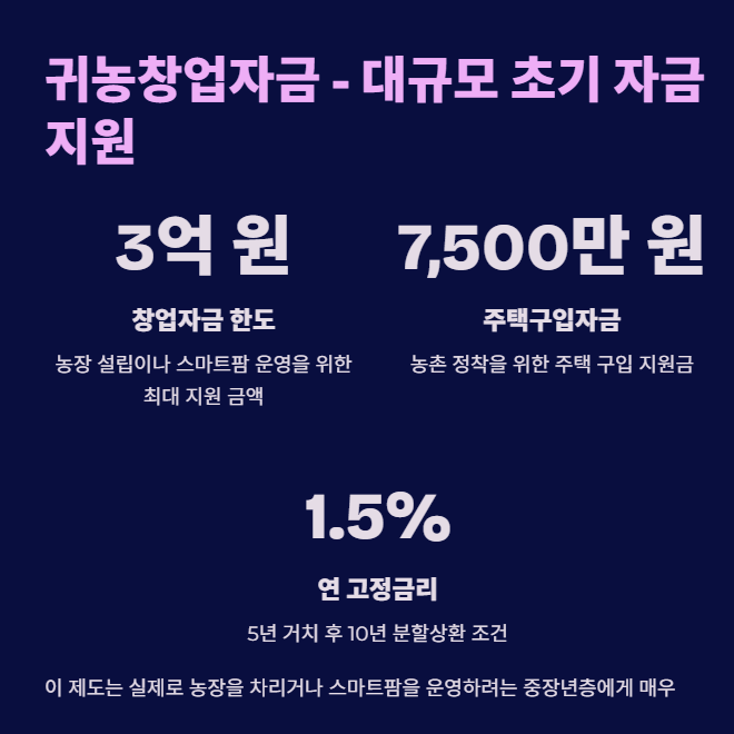 💡 이 제도는 실제로 농장을 차리거나 스마트팜을 운영하려는 중장년층에게 매우 유리하며,
